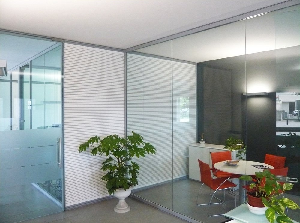 Operations: Indoor partition walls made of crystal and Top Acustic. Offices furnishings
